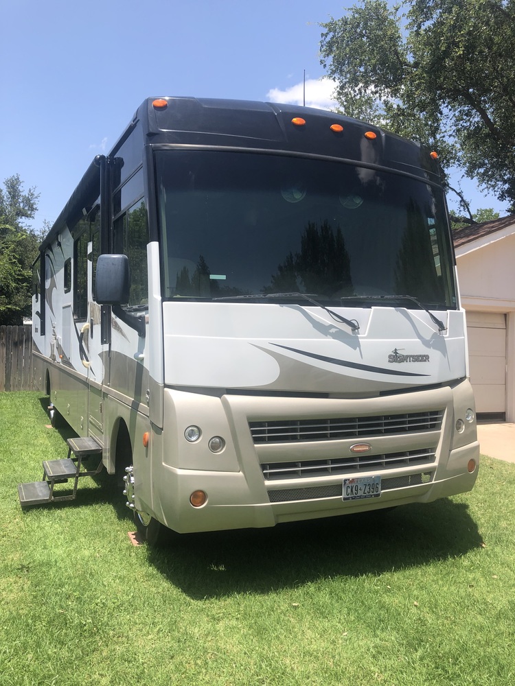 EXTREMELY clean Coach, with low miles (16,457), in excellent condition. It has been under cover since new. 37 hours on the Generator. The 2 slides provide great space and ease of set up. A King bed, Dual ACs with individual thermostats, 4 door fridge with ice maker, 2 pull out pantries, oversized shower, flat screen TVs with a DVD. Beautiful cabinetry, abundant storage, on the inside and the outside. Roof is in excellent condition. Still drives, rides and handles like a new coach. From day one we have enjoyed the comfort, reliability, and the quality of the drive. A like new 6500 pound, Alpha 2 Blue Ox tow bar is available. There is also an option for delivery.