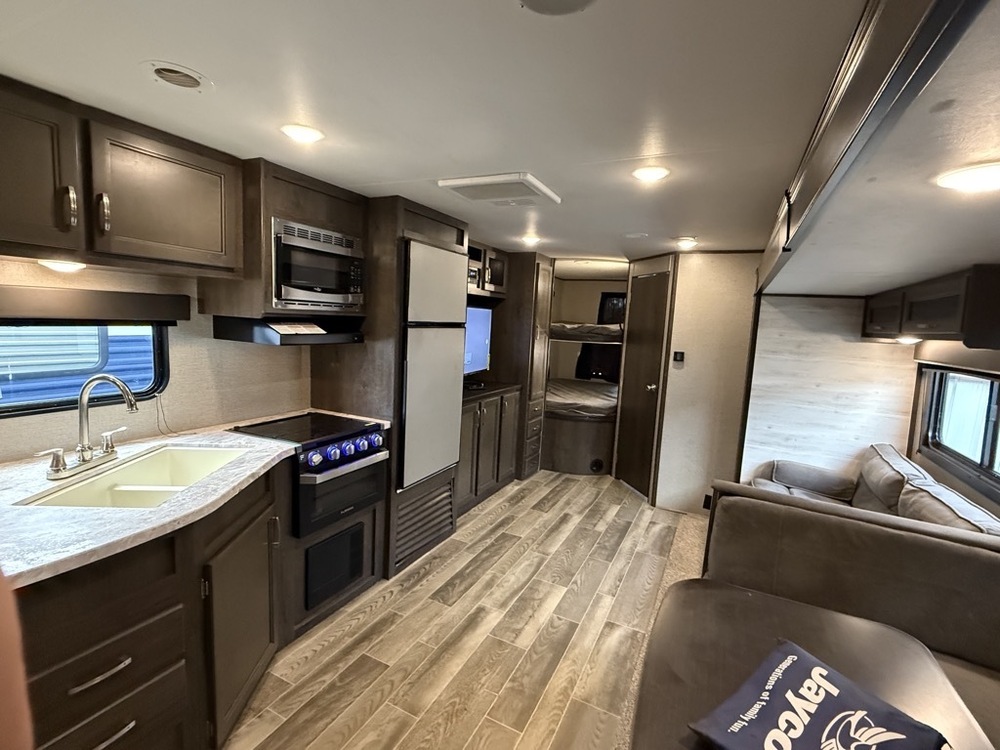 2021 JAY FLIGHT SLX 8 284BHS. 34FT LENGTH. GREAT FLOOR PLAN WITH TWO XL REAR BUNKS AND FRONT QUEEN BED. BRAND-NEW RESIDENTIAL-SIZE QUEEN MATTRESS. DINETTE / SOFA CONVERTS TO SLEEPER. SLEEPS 8 COMFORTABLY. SUPER CLEAN AND IN GREAT CONDITION. 50-AMP SERVICE. OUTDOOR KITCHEN. OUR PRICE $17,995. LOCATED IN KENEDALE, TX.