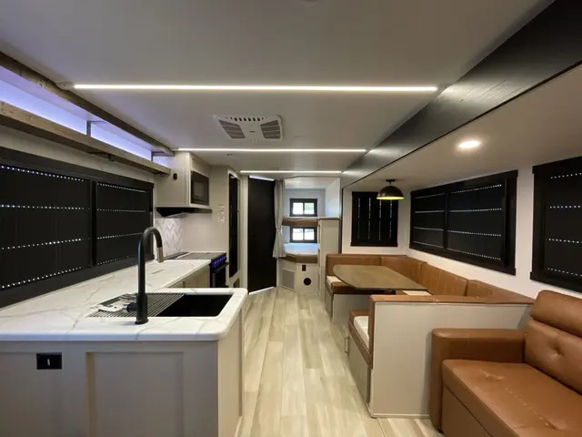 The Salem Hemisphere Hyper Lyte 25BHHL comes fully equipped with modern amenities, including a well-appointed kitchen with a refrigerator, stove, and microwave, allowing you to whip up meals on the go. The open living space features comfortable seating, ample storage, and high-end finishes for a luxurious feel. Enjoy the great outdoors with an adjustable awning, outdoor speakers, and ample storage for all your gear. Whether you're heading to the mountains or the beach, this travel trailer is designed to enhance your camping experience.
