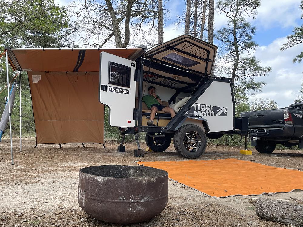Equipped with off-road tires, high ground clearance, overland suspension and electric brakes, the Tigermoth can take you to remote campsites that other trailers can't reach. There's a built-in electrical system with battery and it's pre-wired for solar.