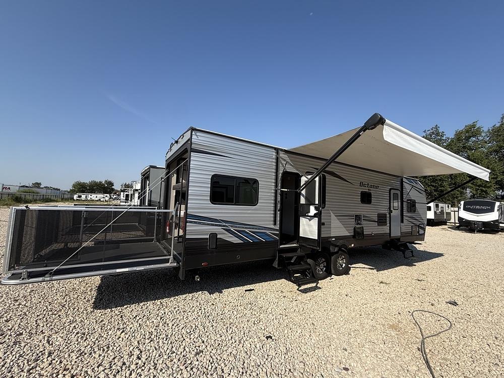 THE CLEANEST, NICEST TRAILER YOU WILL EVER FIND!!! 2020 JAYCO OCTANE SUPER LITE 293 TOY HAULER SERIES, WITH A PARTY DECK, Length 38FT. 2 REAR POWER BEDS, UNDERNEATH AND OVERHEAD STORAGE COMPARTMENTS. SUPER NICE KITCHEN, MULTIPLE STORAGE CABINETS. ENTERTAINMENT AREA WITH MULTIMEDIA SOUND SYSTEM. INDOOR AND OUTDOOR SPEAKERS. REMOVABLE REAR DINING TABLE. SOFA SLEEPERS. HEATED/ MASSAGE SOFA. OUTDOOR SHOWER. 30 GALLON FUEL STORAGE WITH PUMP, SUPER NICE UNIT. Lots Of Storage spots. Awning With LED Lighting. Sleeps 8, COLD A/C. Super Clean.. SUPER NICE TRAILER ONLY 8477Lbs UVW. CAN BE PULLED WITH A SMALL SUV. 50AMP POWER. OUR PRICE $23,995. SEVERAL SUPER NICE RVS TO CHOOSE FROM. We are located in KENNEDALE TX. We show Rv's 7 Days A WEEK BY APPOINTMENT. Call BRET 817*805*0067 or AMY 817*658*4633 FREE DELIVERY AVAILABLE TO ALL 48 STATES. WE INSPECT & GO THROUGH ALL TRAILERS TO ENSURE OUR CUSTOMERS ARE 100% SATISFIED. SE HABLA ESPANOL!
