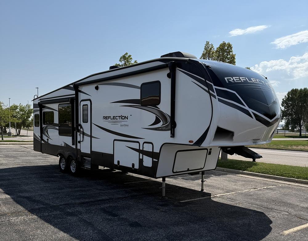 On the exterior, the Reflection 337RLS features 50 Amp service, 2 Ducted A/C, 2 power awnings for outdoor entertaining, a factory installed roof ladder, 2-30# propane bottles, an outdoor shower, and plenty of storage for all your gear. The sturdy construction and high-quality materials ensure that this fifth wheel will withstand the rigors of the road for years to come.