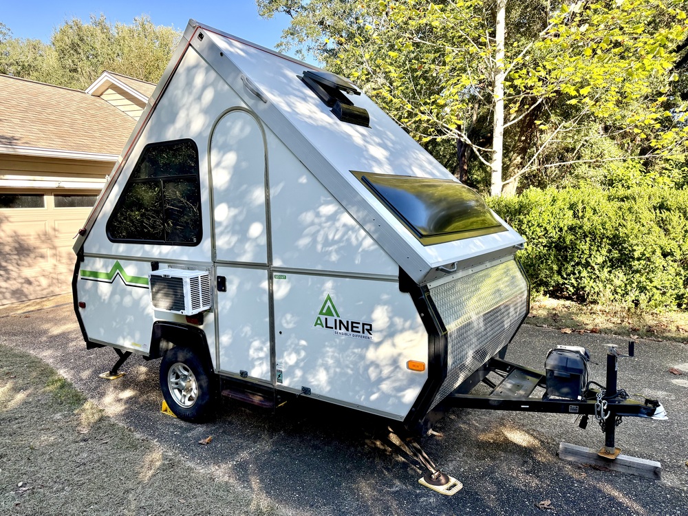 This is a 2018 Aliner Scout, Park Package, in Tallahassee FL, with an air conditioner and refrigerator both using 120 volt shore power. It does not have propane. We towed it with a 2018 Subaru Outback, with 2,500 lb towing capacity on many trip. We have camped with this Aliner in Canada and 19 states, including out West to California, Oregon, Montana, and back. Due to health issues we must reluctantly sell this great little camper with which we have had so much fun.