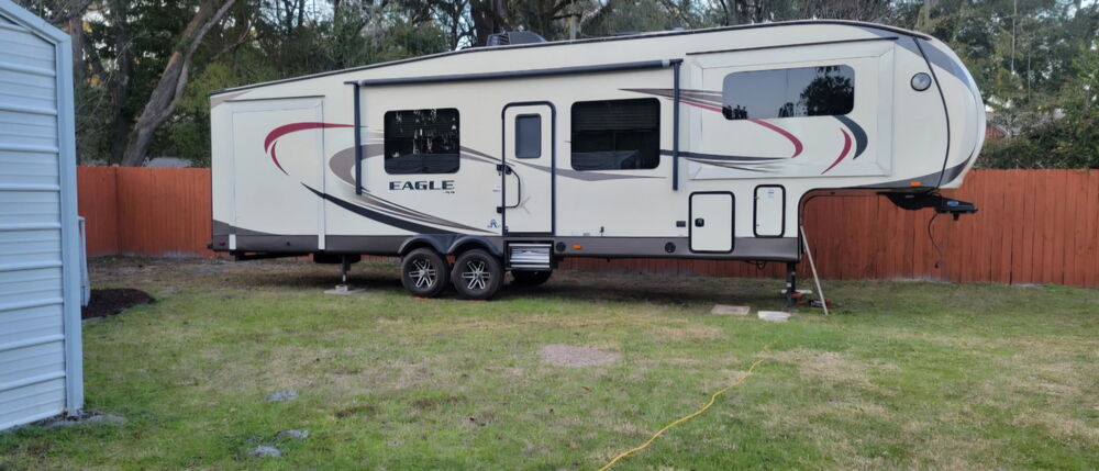 2016 jayco eagle 39.5 ft 50 amp winter pkg ,awning ,outdoor speakers and great lighting. 4 slides,fireplace,2tv'splenty of storage wood cabinets queen bed new couch and love seat very clean,ac and heat great working order. Plenty of outside storage. All accessories included. serious buyers please located in orangepark fl has clear title.