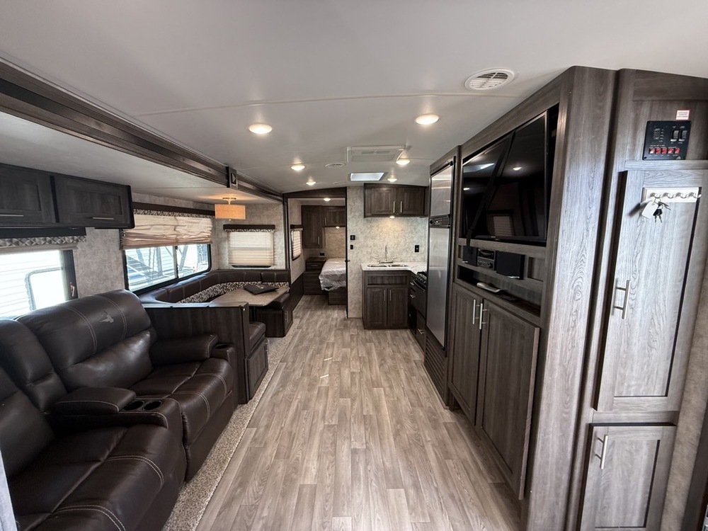 COLD A/C UNITS. 6 GAL WATER HEATER, 30AMP POWER. OUTDOOR STORAGE. OUTDOOR KITCHEN, 2 ENTRY DOORS. DUAL AWNINGS WITH LED LIGHTS. LUXURY FEEL THROUGHOUT!! ONLY 5765UVW.