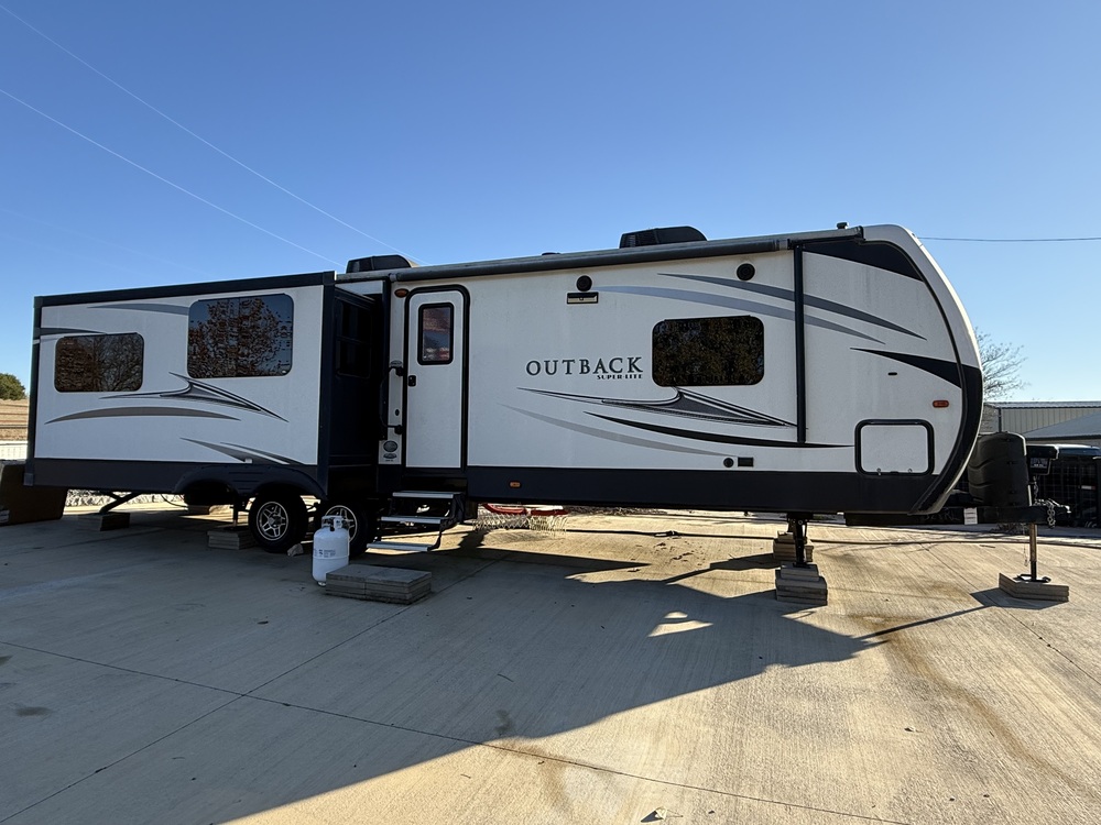 Outside, the Keystone Outback Super-Lite 328RL has a power awning, ladder , luggage rack , awning and plenty of storage for all your gear. Whether you're camping in the mountains or relaxing at the beach, this trailer has everything you need to make the most of your time on the road.