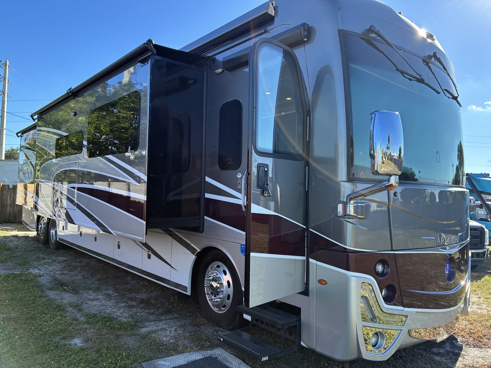 The 2022 Holiday Rambler Armada 44B is a Class A motorhome that offers luxury and comfort for your next adventure on the road. With only 7000 miles on the odometer, this RV is practically brand new and ready for all your travels.
