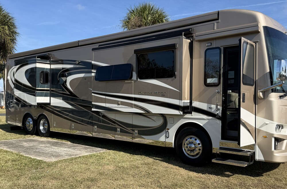 This coach has been used twice less than 10 nights total since purchase. Purchased used in February 2025 for our retirement but life changed a month ago and we no longer need it. Always stored covered or indoors, currently set up and plugged in at a beautiful RV resort in Port Richey, FL with site paid through January 31, 2026.