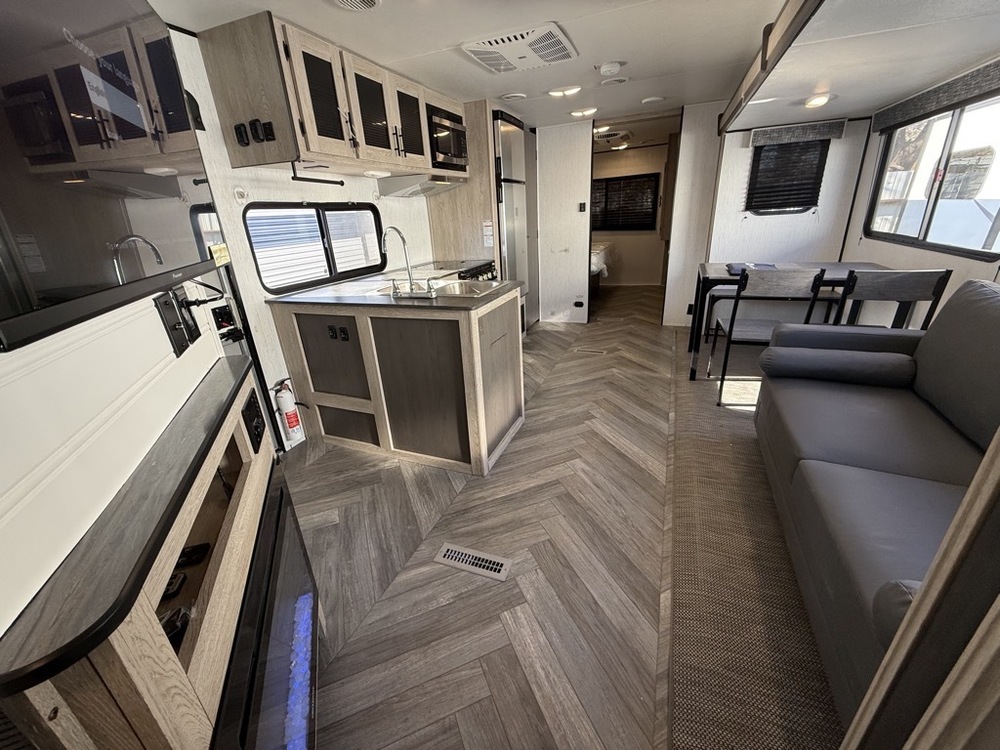 COLD A/C UNITS. 50AMP POWER. OUTDOOR STORAGE. OUTDOOR KITCHEN, SOLID STEP ENTRY. AWNING WITH LED LIGHTS. LUXURY FEEL THROUGHOUT!! ONLY 8330 UVW.