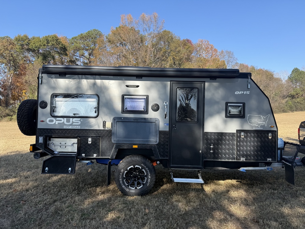 Selling our 2023 Opus OP15 hybrid off-road camper. It has 5300 miles on it. Its in good condition, well-maintained, and fully functional with the exception one small fan (see bottom for details). There is normal cosmetic wear from regular use. This unit includes the lithium battery upgrade, making it a strong off-grid performer.