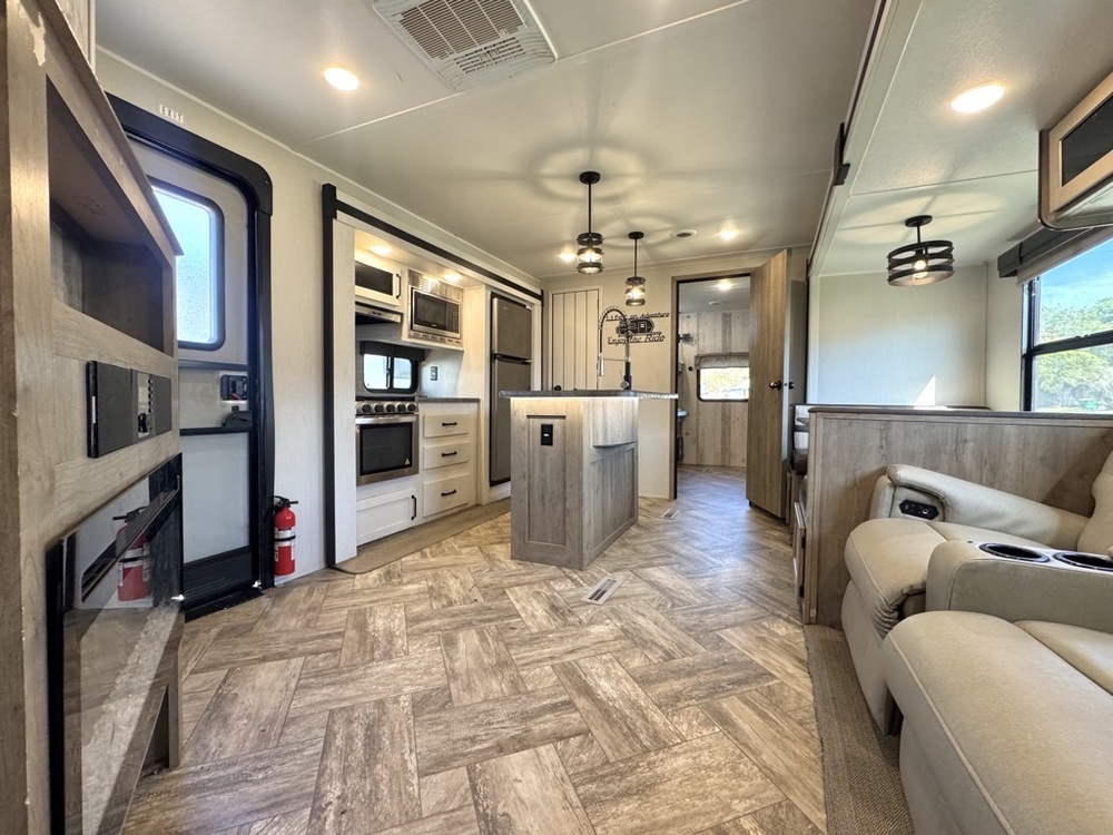This 2023 Puma is the large bunkhouse you’ve been looking for! With 4 slide outs, you’ll never be short on room in this beautiful travel trailer. The modern farmhouse look brings home on the road, and even includes an outdoor kitchen. This unit features 2 A/Cs, a large power awning, and washer dryer hook ups.