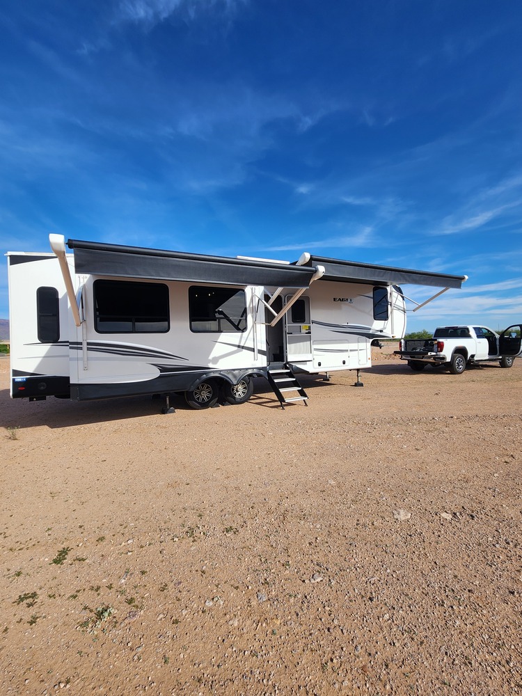 Must see to appreciate this super clean Jayco Eagle 5th Wheel Model 321RSTS. One non-smoking owner with no pets. Interior colors are cream and espresso. Includes 3 slide-outs, residential fridge, electric fireplace, dual A/C units, custom dining room tabletop with leaf extension, double recliner, fold-out sofa, 2 smart TVs and king size bed. Factory label listing installed standard & optional equipment as well as interior layout are provided in the attached photos. After purchase improvements include installing SumoSprings (type of shock absorber) to reduce bounce and improve stability, replaced original exhaust fan with high CFM MAXXFan, added a secondary deep cycle battery and installed keyless entry lock. Required set-up equipment: surge protector, hoses, pads, chocks, etc. are also included. Full set of Goodyear Endurance tires were installed in July 2025. Complete set of manuals/literature/instructions will be provided.
