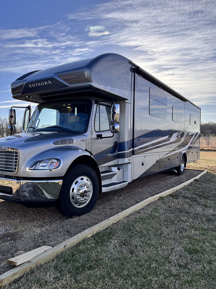 This beautiful RV features the Customer Value Package which includes a 2000 watt inverter, backup & sideview cameras with monitors, convection microwave, roof mounted awning electric power cord reel, frameless windows, infotainment system, residential refrigerator, and E-Z Drive Premier package that provides the superior ride and handling experience travelers have come to expect from Entegra Coach. E-Z Drive includes a computer-balanced driveshaft, rear air suspension, heavy-duty rear stabilizer bar, full air brakes, and SACHS brand shocks.