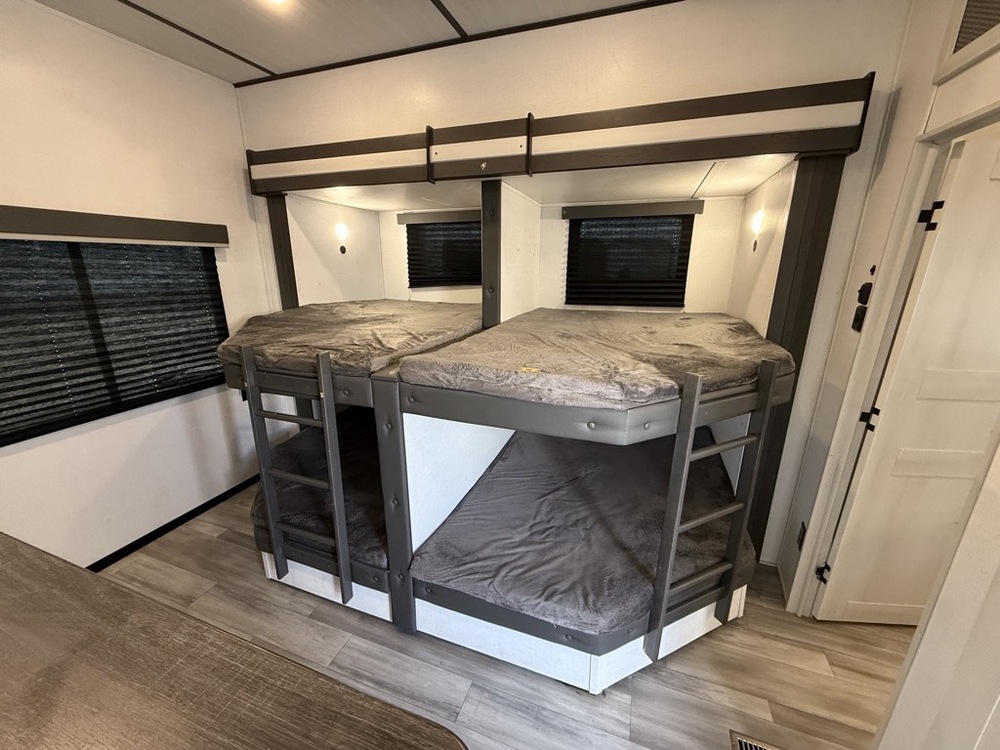 BEAUTIFUL LIKE NEW 2024 KEYSTONE SPRINTER LIMITED 3810QBS WITH 2 BEDROOMS W/ UPSTAIRS SLEEPING LOFT. 4 REAR FULL BEDS. KING MASTER SUITE. 3 A/C, IS A 5TH WHEEL LOADED WITH LUXURY!! 43 LONG. 4 SLIDES. BEAUTIFUL DUAL VANITY BATHROOM & CLOSET WASHER/DRYER. LARGE LIVING AREA WITH THEATER SEATING & UPGRADED SLEEPER SOFAS. ELECTRIC FIREPLACE & BIG 60" FLAT SCREEN TV. BEAUTIFUL ISLAND KITCHEN with residential refrigerator, STAINLESS STEEL APPLIANCES, and LOTS OF CABINET STORAGE. FULLY ENCLOSED & HEATED UNDERBELLY. 4 SEASONS PACKAGE WITH UPGRADED INSULATION AND DUAL-PANE WINDOWS. DESIGNED FOR YEAR-ROUND COMFORT IN HOT OR COLD CLIMATES. 3 COLD FURION A/C UNITS. 50AMP POWER. AUTO-LEVELING SYSTEM. HUGE BASEMENT STORAGE. SOLID STEP ENTRY. DUAL AWNINGS WITH LED LIGHTS. LUXURY FEEL THROUGHOUT!!, UVW 13130 FACTORY SOLAR OUR PRICE: $49,995. WE HAVE MULTIPLE HIGH-END FIFTH WHEELS TO CHOOSE FROM!! We are located in KENNEDALE, TX. We show RVs 7 DAYS A WEEK BY APPOINTMENT. Call BRET 8178050067 or AMY 8176584633. FREE DELIVERY TO ALL 48 STATES. WE INSPECT & GO THROUGH ALL TRAILERS TO ENSURE OUR CUSTOMERS ARE 100% SATISFIED. ¡SE HABLA ESPAÑOL!