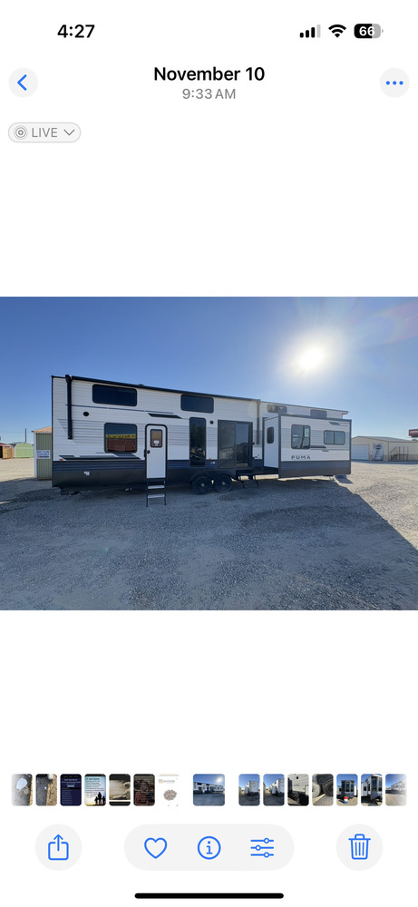 This 2025 Forest River Puma 402LFT park model was gently lived in from November 2024 through April 2025 by a woman during her transition from Southern California to Quartzsite, Arizona.