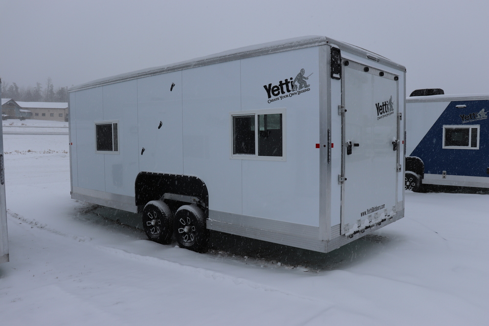 Featuring out NEW 2026 Yetti Fish House 8′ x 21′ Shell Fish House for sale will make your year winter ice fishing experience a very comfortable one. This lightweight all aluminum frame Yetti ice house floor plan is designed for anything the weather can throw at you. Our 2026 Yetti fish house has only the best features and quality you can expect from a fish house.