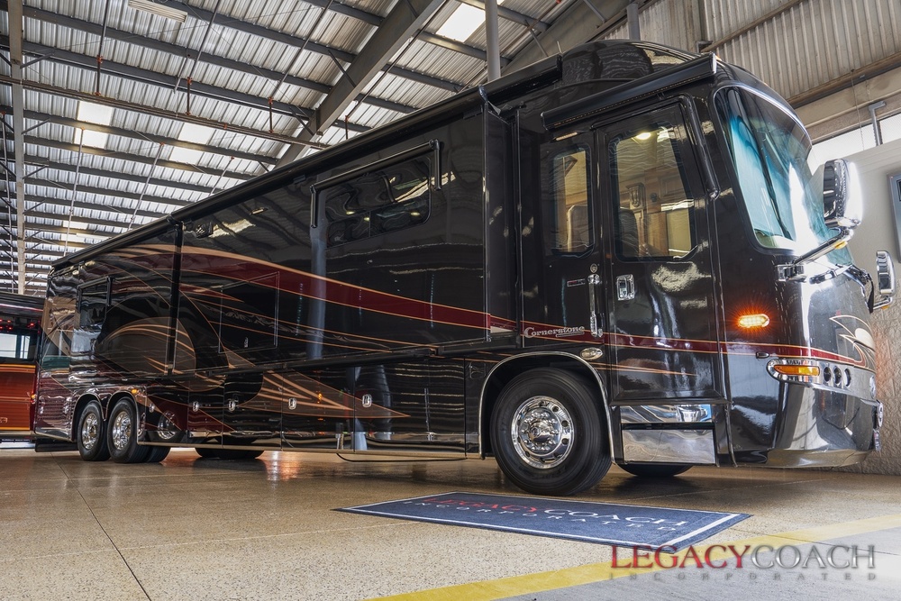 2015 Entegra Cornerstone 45B - Quad Slide - BATH AND A HALF coach just in! We have known this beautiful one-owner coach since new. Stored indoors at our onsite storage facility and serviced with no expense spared, this coach features:
