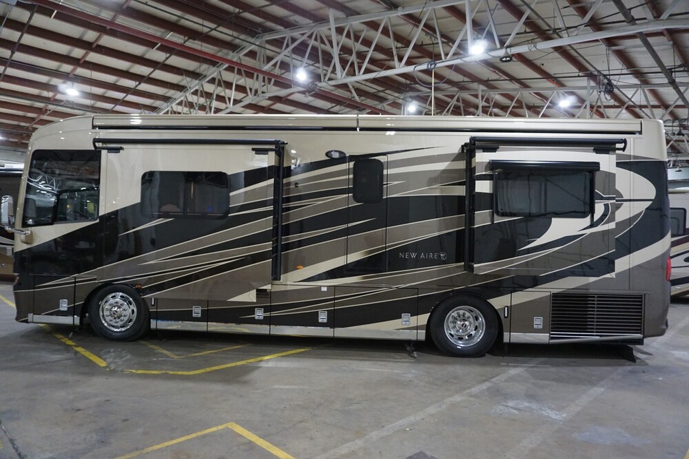 This custom order & loaded 2018 Newmar NewAire just arrived and it’s in “like new” condition. ONLY 5,189 miles. Why BUY NEW !!!!! Garaged since new, one owner, Freightliner XCR Chassis with IFS and Comfort Drive, HWH Auto Leveling, Solar, 360 Camera View, Collision Avoidance, Full heated tile floor, Onan 8.0QD Gen with 27 hours, Queen Bed, Stacked WD, Televator, Heated Cab Seats, and Full awning package. Please contact us for any questions or additional info needed.