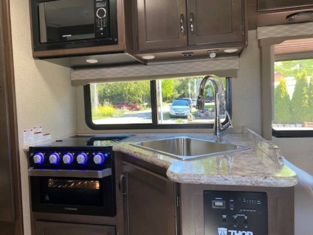The 2019 Thor Motor Coach Freedom Elite 26FE is a Class C recreational vehicle designed for travelers seeking both comfort and convenience on the road. With 47,000 miles on the odometer, this well-maintained RV is ready to take you on your next adventure. The Freedom Elite model offers a perfect balance of efficiency and spaciousness, making it ideal for small families or couples looking to explore the great outdoors in style.