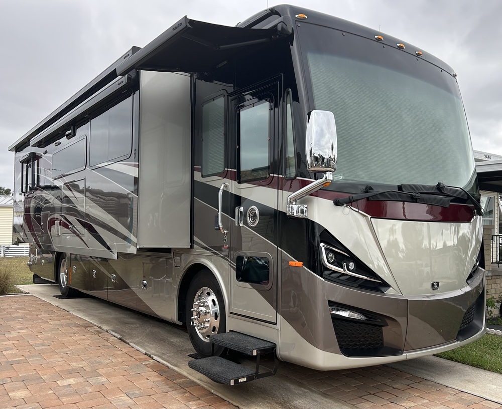 2021 Tiffin Phaeton 37BH, bath and a half w/30,792 miles, 380 Cummins Diesel Pusher - 100 gal. Fuel Tank, Three Slide Outs, In Dash Navigation, Color Rear Vision Monitors Side Cameras Activated By Turn Signals, Valor TPMS System, Tyron Tire System Flat Tire Protection, Safety Plus Steering Stabilizer: Installed 3/18/21, 10,000-watt OnanGenerator, Auto Hydraulic Leveling System, Electric Cable Reel, Electric Water Hose Reel, Solar Prep, Girard Awnings, In Motion Satellite Dish, Three Coleman Rooftop AC Units w/Heat Pumps, Truma Water Heater,3 - Dometic Vent Covers,Fresh Water: 90 gal, Black Tank: 50 gal, Grey Tank: 66 gal, LG Residential Refrigerator w/ Ice Maker, Whirlpool Microwave w/ Convection Oven, Furrion Gas Range Cooktop and Oven, Full House Vacuum System, Extendable Island, Large Deep Bowl and Shallow Bowl Stainless Steel Kitchen Sink, Kitchen Table w/ Chairs (extends for more seating), 4- LG TVS; Front TV, Mid TV w/ Subwoofer and Sound Bar, Bedroom TV, & Exterior TV w/ Sound Bar, DVD Player, Electric Heated Floors, Sofa Converts to Queen Air Coil Bed, Jackknife Loveseat, Queen Sleep Number Bed in Bedroom, Emergency Egress Rear Escape Exit in Bedroom, Stackable Splendide Washer & Dryer, Original Owners, No pets, Non smokers