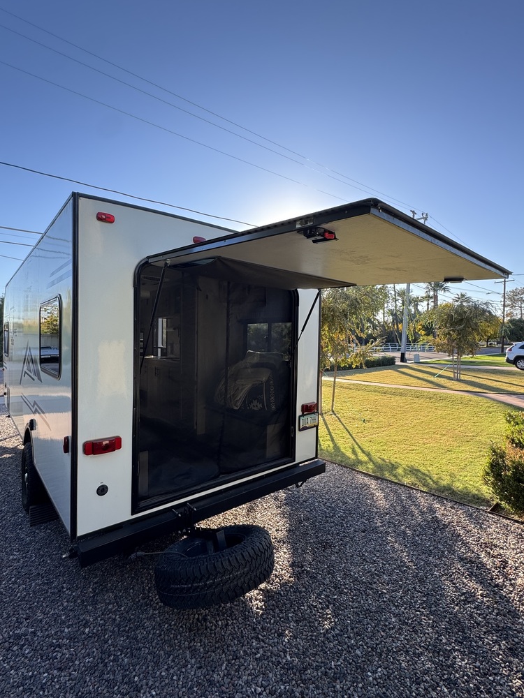 Sleeps 2-4 with 2 full beds (mattress is brand new and dinette makes into a bed good for kids) 2 burner stove, microwave, booth dinette, large two door fridge/freezer, back hatch opens, electric patio awning, outside grill, AC & heat, bike rack on the front of the camper, fresh water tank is 20 gallon and black water tank is 30 gallon. call Craig 602X430X7614