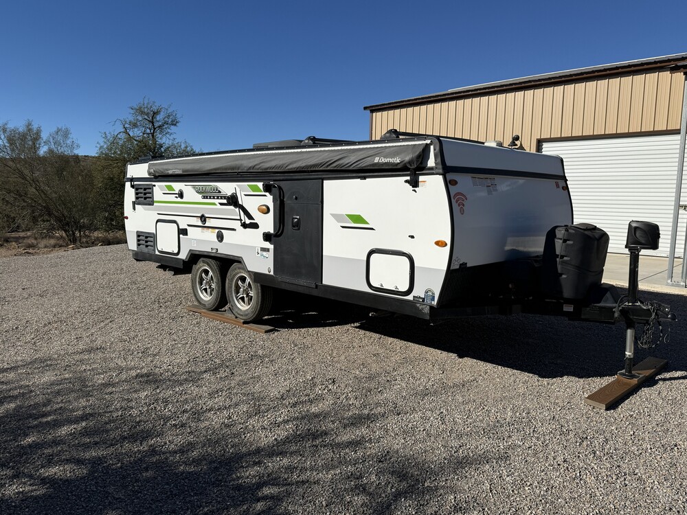 2021 Forest River Rockwood HW296 pop up trailer. Ideal for SUV's and home storage. 3,721 dry weight, dual axil, dual king size beds, sleeps up to 7, slide out dinette area, full length awning, toilet, indoor and outdoor shower, a/c, heater, microwave, stove, oven, dual battery, dual gas tanks, outdoor grill, lots of storage space. Open length of 37' and a closed length of 21.5'.