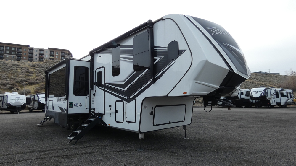 The 2023 Momentum 395MS doesn’t just talk the talk; it’s built to conquer the road with its superior construction and design. Every inch of this fifth wheel is designed with precision, ensuring durability and reliability on every journey. With ample garage space, transporting your toys – whether dirt bikes, ATVs, or kayaks – has never been easier, guaranteeing endless fun and exploration. Embrace the great outdoors knowing you have a monstrous list of premium features and an unrivaled reputation for quality backing every mile you travel. Choose the Momentum 395MS and redefine your adventures with unmatched class and comfort.