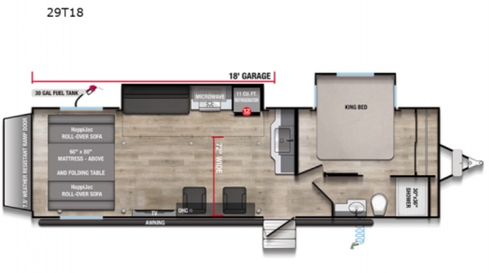 The 2023 Alliance RV Valor 29T18 is a top-of-the-line toy hauler designed to meet the needs of outdoor enthusiasts looking for the ultimate adventure on the road. With a sleek and modern design, this RV offers both style and functionality for all your travel needs. The Valor is equipped with top-of-the-line amenities and features that make it stand out from the competition.