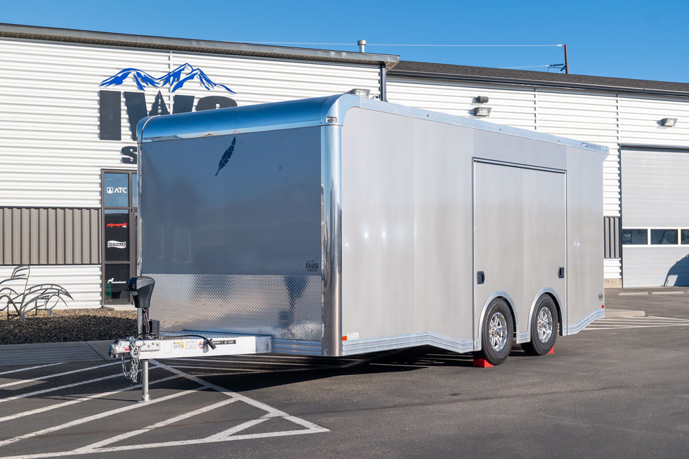 Featherlite’s enclosed bumper pull car hauler offers functionality, durability and value for car enthusiasts. It’s also a great option for hauling UTVs and snowmobiles too! This trailer features a spread axle design, rear spoiler and flat nose, along with their new rivetless side sheet design.