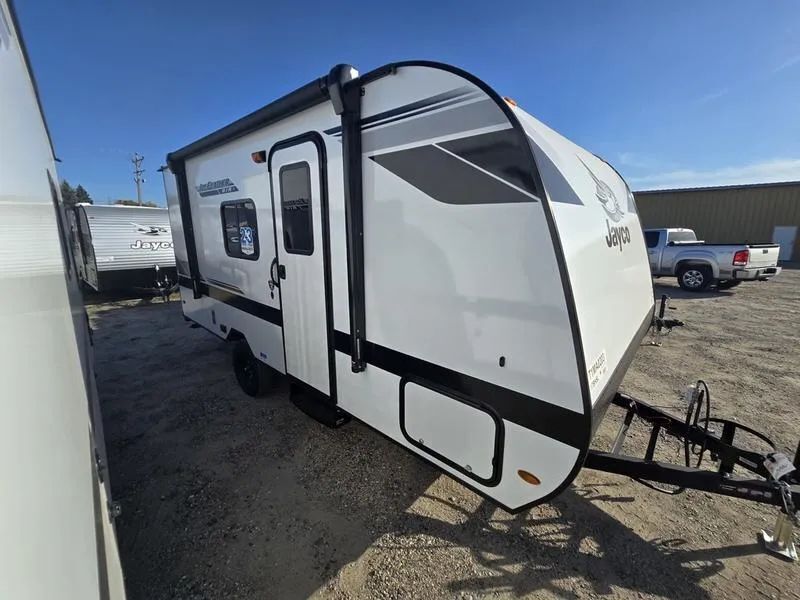 Jayco Jay Feather Air SL 17BHSL, VIN 1UJBB0AJ1T1MA0203, is a 2026 ultralight bunkhouse that delivers real Jayco build quality in a compact, easy-tow package. The window sticker shows an unloaded vehicle weight of 2,961 lb, a length of about 21' 3", and an exterior height of roughly 10' 1" (120.88"), so it stays firmly in half-ton and many midsize-SUV territory without giving up full hard-side comfort. With a 30-gallon fresh tank and 20-gallon gray and black tanks, plus a tankless water heater and 19,000 BTU furnace, it is set up for long weekends and extended road trips rather than just a quick overnight.