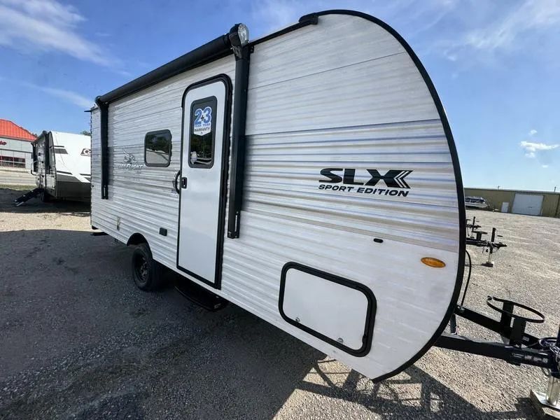 Construction mirrors the rest of the Jay Flight SLX line. Standard equipment includes 30-amp service, 8K BTU wall-mount A/C for single-axle models, fully integrated A-frame, axles with electric self-adjusting brakes and easy-lube hubs, galvanized-steel impact-resistant wheel wells, nitrogen-filled radial tires, exterior cable TV hookup, large exterior downspouts, Jayco s Magnum Truss roof system, and a PVC roofing membrane with a limited lifetime warranty. Jayco also highlights the oversize freshwater design on Jay Flight SLX single-axle units carry a full 30 gallons, supported by steel bars instead of thin straps plus the tankless water heater that keeps hot water coming far longer than a typical 6 10 gallon tank.