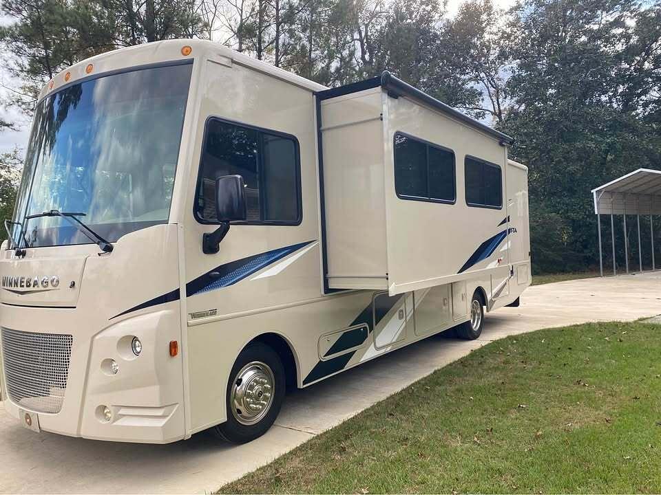 This 2022 Winnebago Vista 32M is in good condition and has been always garage kept. It has approximately 13,000 miles and is powered by the Ford 7.3L gas engine, which provides strong performance and reliability.