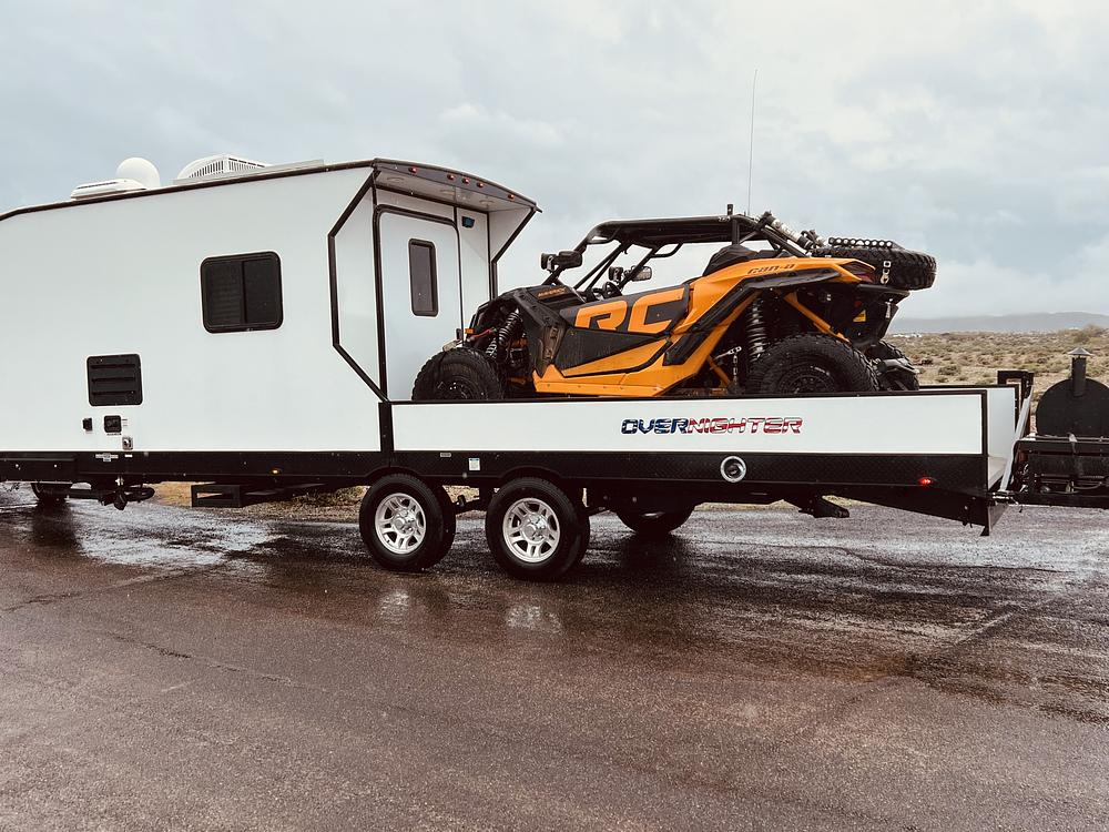 Very well outfitted RV for side-by-side or sand rail. Custom Murphy bed. Honda 3000i generator. Traeger grill and Blackstone flat grill permanently mounted on a customized swinging tailgate. Rockford Fosgate sound system with subwoofer. Party LED lights underneath. Cable locking mechanism to secure your side-by-side.. Onboard Gas Tank, heavy duty ramps with custom storage area. Wide pneumatic assist stairs with grab handle and electronic door lock. Porcelain toilet. Solar with inverter system. Larger diameter, wheels, and tires. Dish network and large smart TV. I love this unit but medical bills have forced sale. Reasonable offers are welcome. Thankyou.