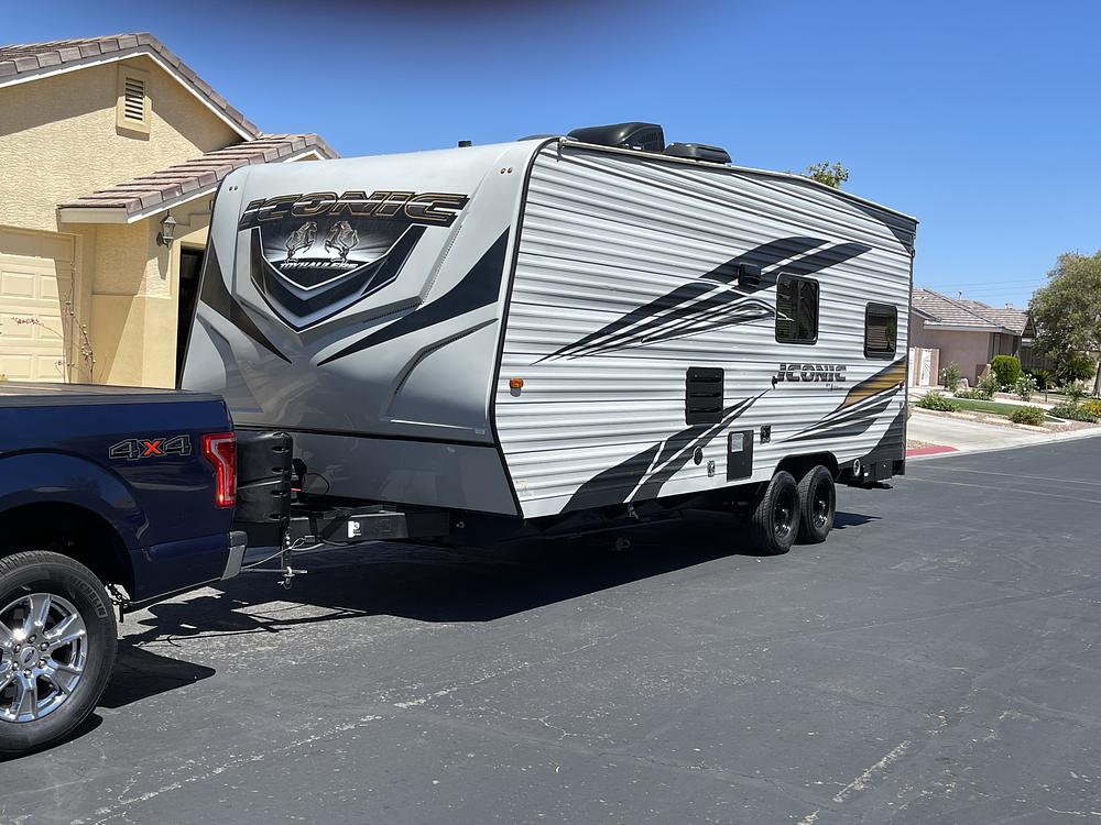 This is a 2021 Iconic bumper pull 28' toy hauler. 17.5 ft cargo space. Unloaded Wt. 5820 lbs. 30 AMP service. Excellent condition. Lots of upgrades. Mor Ryde suspension, Sewer hose holder, 4 Stabilizer jacks, Power tongue jack, 100 gallons fresh, 50 gallon black, 50 gallon gray, 12V Jensen TV, Winegard TV antenna(wifi capable), Large grab handle, Keyless entry, New batteries, Recent tires, 40 gallon fuel station.