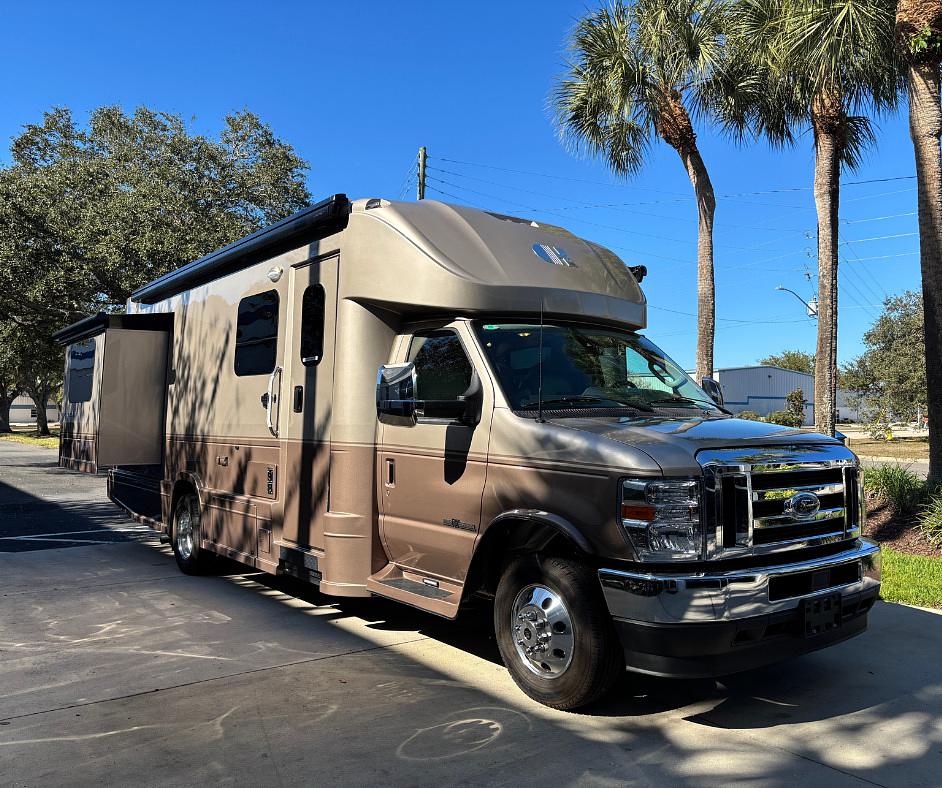 The Coach House Platinum IV 272IV is the largest and most spacious model in the Platinum IV lineup, designed for travelers who want maximum comfort without sacrificing drivability. Built on the reliable Ford E-450 chassis, it delivers a powerful, smooth ride, while the patented one-piece fiberglass body ensures durability, insulation, and a quieter interior.With two slide-outs, the 272IV offers an expansive living space, creating a true home-like feel on the road.