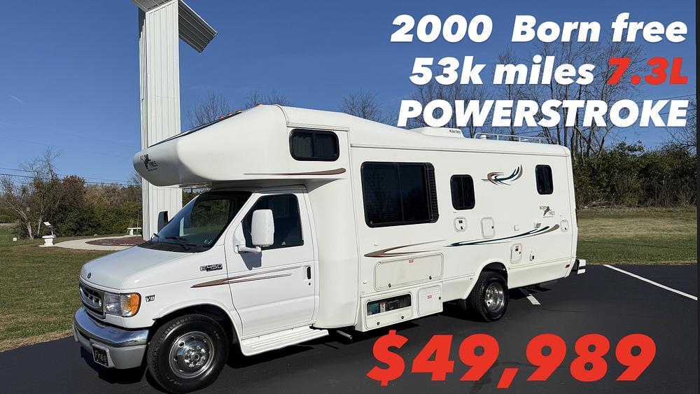 2000 BORN FREE 26RSB is a Class C motorhome that is known for its quality construction and attention to detail. With only 53,158 miles on the odometer, FORD F-450 Chassis with the 7.3 Liter DIESEL TURBO POWER STROKE DIESEL Engine.Full leather Interior, solild oak cabinets with tons of pull outs and storage, New Michelin tires, Onan generator,Just serviced and ready to go