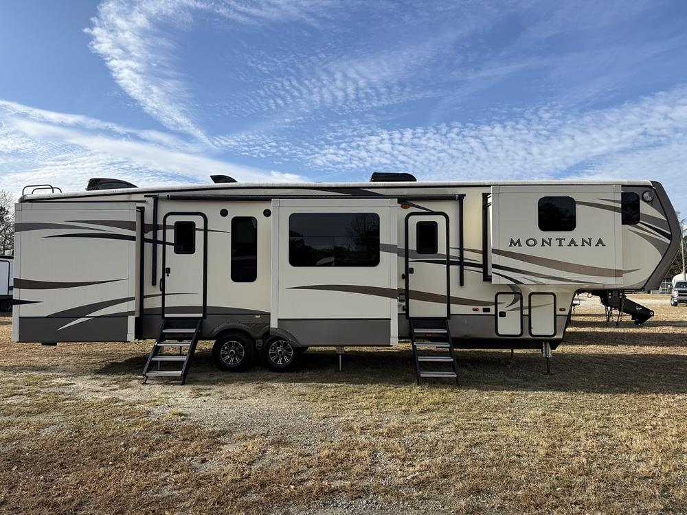 Step into extraordinary comfort and modern design with the 2018 Keystone Montana 3820FK, a majestic culmination of relaxation and adventure. This luxury fifth wheel, renowned for its robust design and sophisticated finishes, promises to redefine your travel experiences. Whether you're cozied up in the lush interiors on a chilly night or enjoying a sunlit breakfast with scenic views, the Montana 3820FK ensures an atmosphere of sophistication and tranquility.