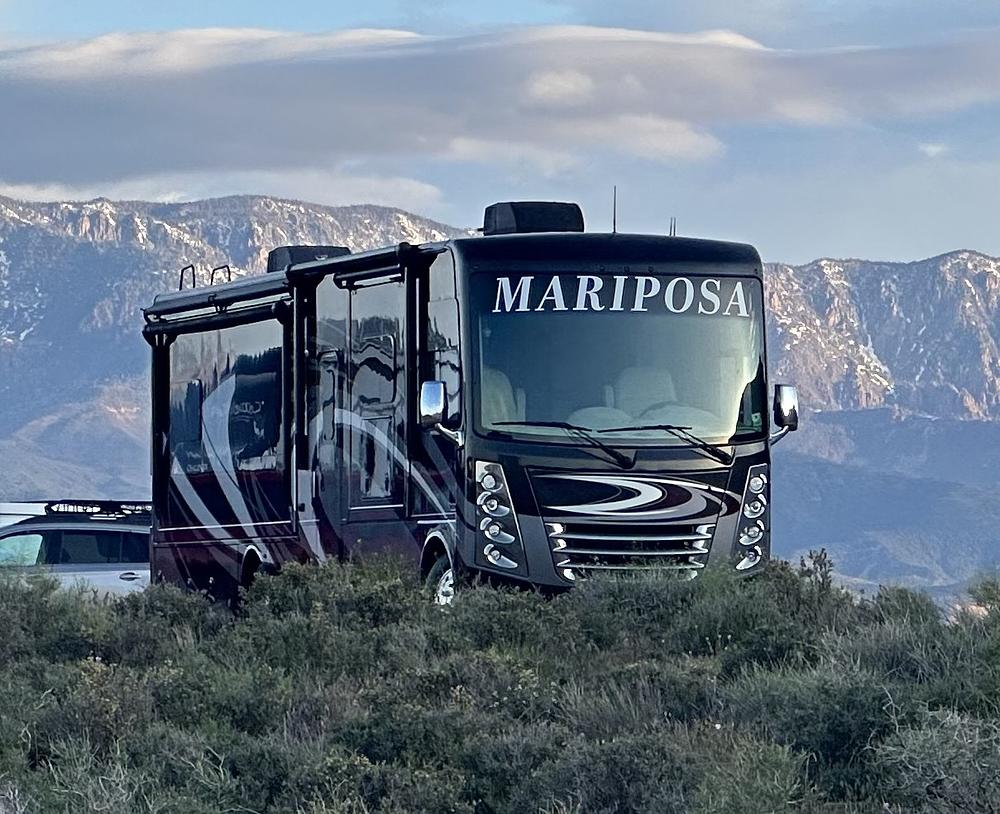 This particular model comes equipped with all the amenities you need for a comfortable and convenient stay on the road. The spacious interior features a cozy living area with privacy doors, new theater recliners, a large TV, and an electric fireplace/heater, and a drop-down queen-size bed, making it the perfect suite when guests visit.
