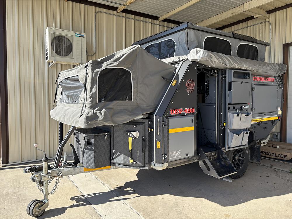 - Added Ironman shower tent to back of camper