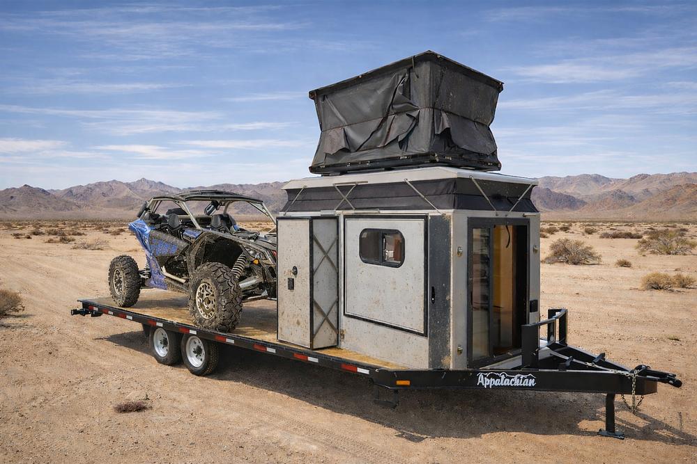 Built around an engineered portable system, the pod can be slid out for camping or living use and slid back in when you need full trailer space. No permanent modifications required. Unlike traditional toy haulers, this system lets you keep your trailer flexible and purpose-driven.