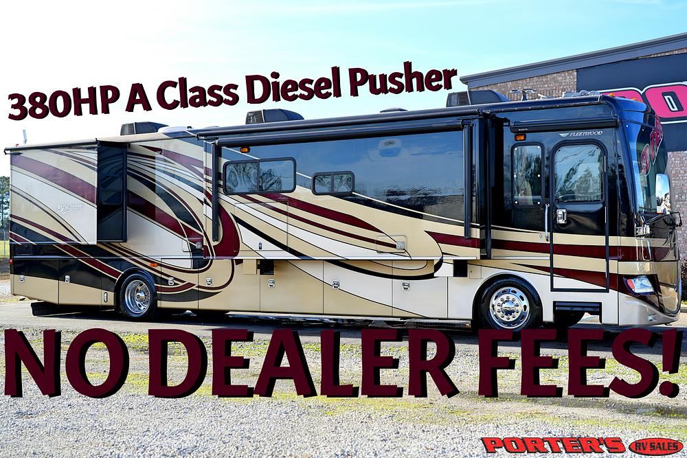 This 41FT, 2012 Fleetwood Discovery A Class diesel pusher has 81,000 miles, comes in the highly popular 40X floorplan that features 3 full size slide outs and sleeps up to 4 people thanks to a KING BED in the rear master bedroom + jackknife sectional sleeper sofa in the middle living area, plus comes optioned with a beautiful full body paint package using their “Gold Starfire” graphics scheme.