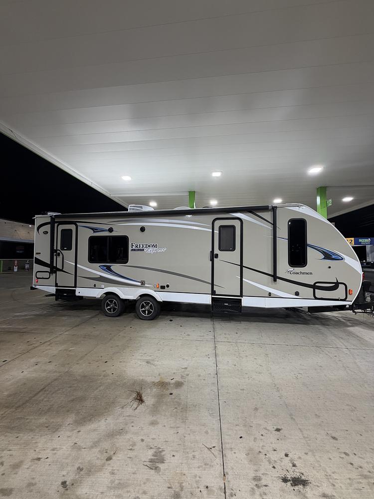 ENTRANCES, SLEEPS 5, CAMPER HAS A HUGE AMOUNT OF STORAGE SPACE. QUEEN BED, BEAUTIFUL FURNITURE, BLACK SHADES, MID SIZE REFRIGERATOR, FULL BATHROOM WITH FULL SIZE SHOWER, OVEN/STOVE, USB CHARGING PORTS, SOUND SYSTEM WITH INTERIOR AND EXTERIOR SPEAKERS. Rubber roof replaced 2years ago, air unit replace Dec 2024 awning replaced summer 2025 also comes with sewerage hoses and tow hitch. Level blocks heated water hose and drinking hose.