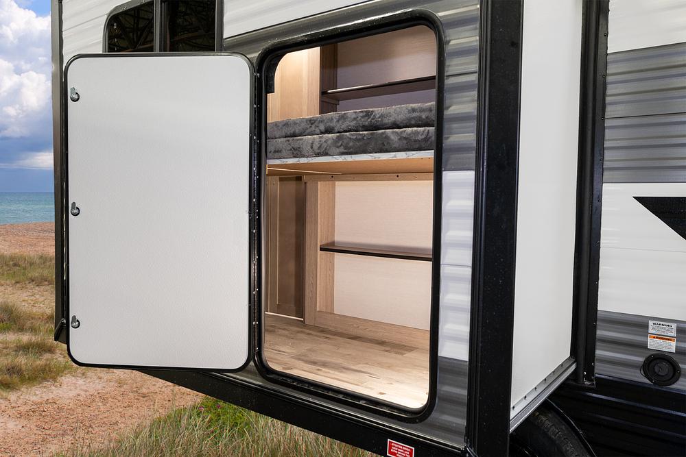 The 228SB features a slide-out living area, creating a noticeably more open and comfortable interior for relaxing, dining, or entertaining. The smart floorplan offers flexible sleeping arrangements, a functional kitchen with ample storage, and a full bathroom for added convenience. Ameri-Lite’s lightweight construction keeps towing simple and approachable for a wide range of vehicles.