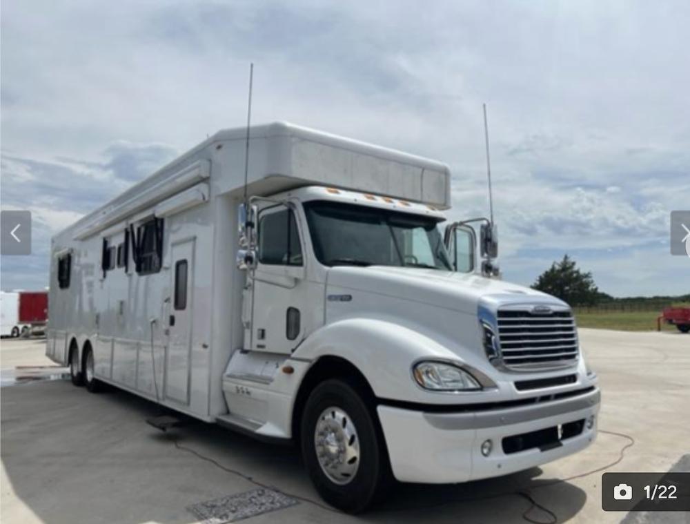 NRC Dual Slide Columbia, 515 Detroit, Automatic, Lots of Sleeping, Big Diesel Generator, Power Awning, Power Awning Over Side Door Entrance, Sleeper Bunk Over Cab, (2) Sleeper Sofas In Main Salon, Oversize Updated Tile Shower, Polished Tile Floors, Granite Countertops, Glass Cooktop, Convection Microwave Oven, 2nd Vanity/Make-Up & Sink Area In Master Bedroom, Magnum Inverter, Outside Grille, Outside Refrigerator, Flat Screens, Satellite, 142K Miles, Form additional information and pricing please call Rciahrd Freeman 405-640-2366 or Michael Brotherton 214-202-0884 or Royce Lee Freeman 405-831-9594 or Erica Enders 713-299-7598 Elite Motorsports, LLC