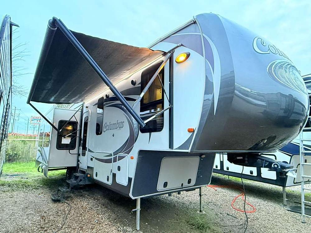 The 2016 Palomino Columbus 320RS is a well-appointed luxury fifth wheel built for extended stays and residential comfort. Known for its solid construction and upscale interior, this rear-living model features a spacious open-concept layout, premium finishes, and excellent storage throughout. A great value luxury fifth wheel priced well below comparable models.