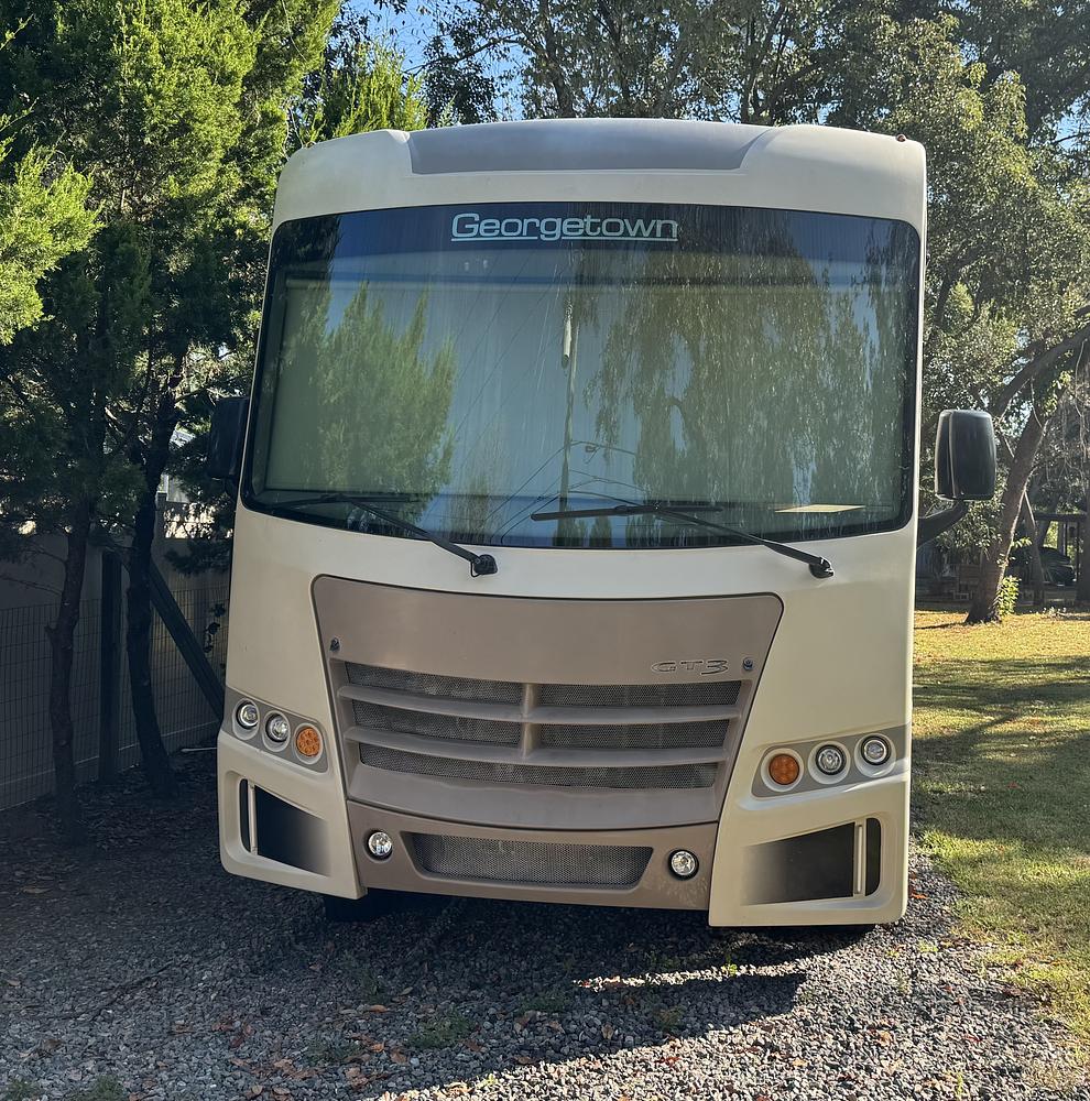 The exterior of the Georgetown 3 Series GT3 is sleek and stylish, with a modern design that will turn heads wherever you go. The large windows allow for plenty of natural light to fill the interior, creating a bright and airy atmosphere. The bold Forest River logo proudly displayed on the front of the RV lets everyone know that you are traveling in style.