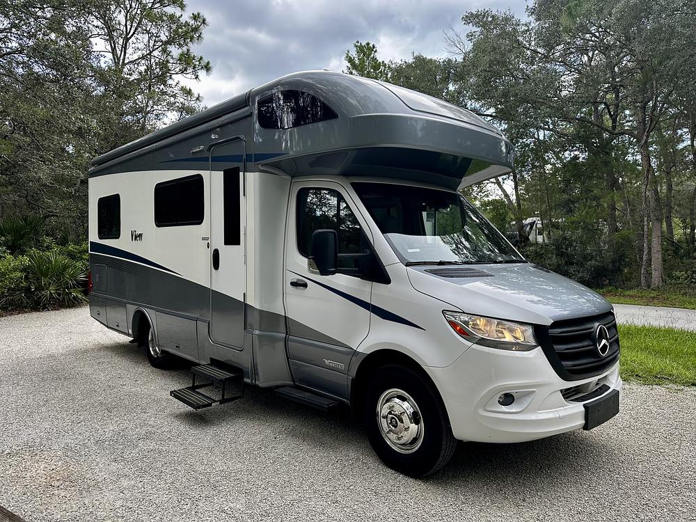 Low-mileage, lightly used View Model 24V featuring a living-area slide-out and flexible bedroom configuration options. The Winnebago View is an excellent choice for those seeking a spacious yet easy-to-drive and maneuverable coachideal for quick weekend getaways or epic cross-country camping adventures. Built on the Mercedes-Benz Sprinter chassis, it features a powerful, proven diesel engine that delivers impressive torque for towing and confidently climbing mountain roads, all while offering exceptional fuel economy.