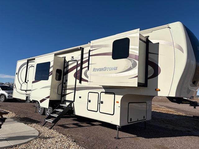 We are selling our 2020 Riverstone 39FK. We purchased this unit brand new in 2021 and have thoroughly enjoyed the build quality and luxury finishes. This beautiful 5th wheel is a front kitchen design with residential fridge, dishwasher, real wood cabinets, central vacuum, washer/dryer combo, 2 fireplaces (1 in master bedroom, 1 in living room) 2 large TV's and 3 AC units. We spent some time in this 5th wheel over a Colorado Winter and a few months in summer in Florida and I can tell you this is a true 4-season unit.