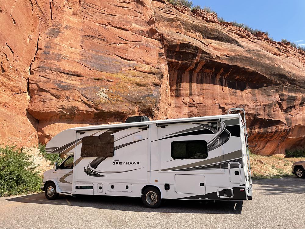 The Greyhawk 27U is a spacious motorhome that offers plenty of room for families or a couple. There are 2 slideouts--dining/living area, and the master bedroom. My wife and I used it for travel and it was great; would also work great for a young family with a couple of kids. The master bed is listed as a king, which is one of the main reasons we chose this model; obviously it's not like a king at home, but a bit larger than others we shopped, and the bed actually has a little bit of space on each side for getting in and out which is rare for any motor home, and wonderful for those of us that are a little older and might need to get up occasionally in the night. The bathroom has a nice size shower. There is a motorized awning on the outside (very nice and convenient if you've ever had to use a manual one.
