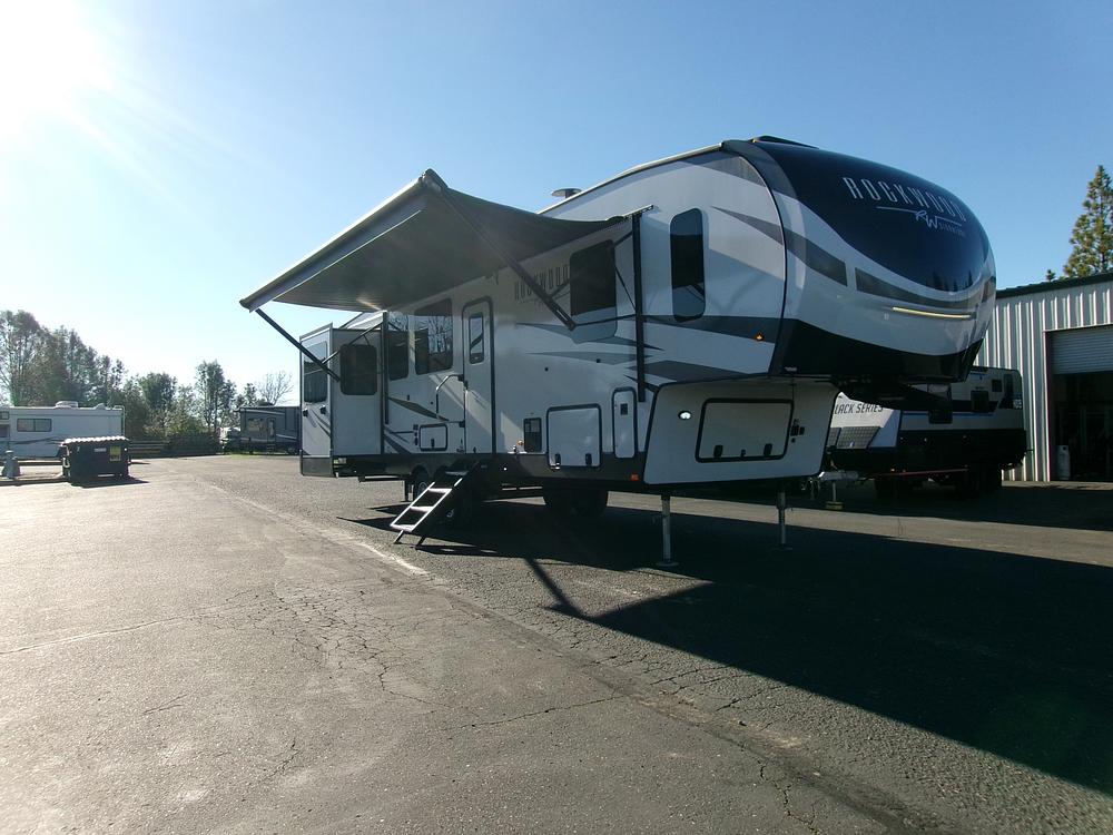 THIS 2023 FOREST RIVER ROCKWOOD 2898BS QUAD SLIDE 5TH WHEEL IN LIKE NEW CONDITION WITH ALL THE NICE UPGRADES!! THE ROCKWOOD IS EQUIPPED WITH SOLAR, RESIDENTIAL REFRIGERATOR, FIREPLACE, 4 LEATHER RECLINERS, LEATHER SOFA BED, HUGE PANTRY, TONS OF COUNTER SPACE, OUTDOOR SPEAKERS, ELECTRIC AWNING, SPACIOUS UPPER BEDROOM, AUTO LEVELING SYSTEM, DUAL AC'S, AND MUCH MORE!!